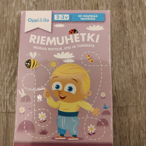 Riemuhetki, Oppi&ilo puuhakortit.Tehtäviä jotka riemastuttavat ja kehittävät lapsen silmän ja käden yhteispeliä ja tarkkaavaisuutta.Kehittävät aisteja,havainnointia ja motoriikkaa.Tehtävät ratkotaan kynän sijaan sormilla. Hauskaa puuhaa yhdessä perheen pienenpien kanssa. Kortteja 25kpl. Kortin koko 15,8x10,2cm.Tässäpä,Ihana lahja Syntymäpv./Joululahjaksi lapselle. Mukana kangaspussi. Sopii,myös vanhemmillekkin lapsille.
