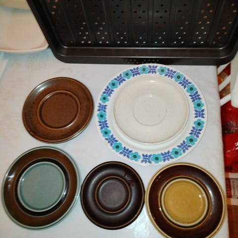 6 kpl syviä ja 6 kpl matalia lautasia. Yhdessä matalassa lautasessa halkeamaa.