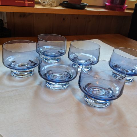 Vanhat ja kauniit jälkiruokakulhot. 6 kpl. Kauniit kaiverrukset. (en tiedä olisiko kristallia?)