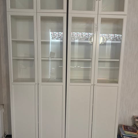 Billy/Oxberg IKEA bookcase with glass doors, black oak effect, 80x30x202, some wear and small scratches, (189€ new) 80€