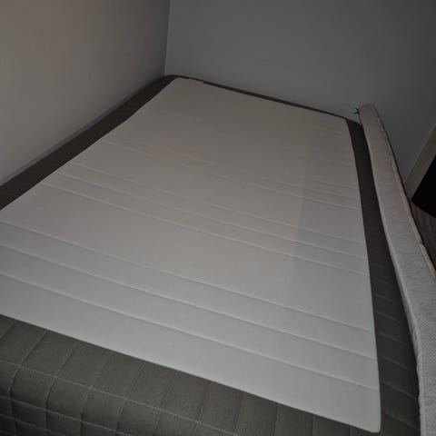 Myydään IKEA:n Skotterud sänky ja Tustna-sijauspatja (120x200cm). Rungon korkeus ilman jalkoja n.33cm, jalat n.10cm.