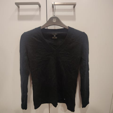 Massimo Dutti -silkki-kashmirneule (kardigan). Koko M. Kunto on muuten oikein hyvä, mutta olkapään saumassa on pieni reikä. Ompelutaitoinen korjaa sen helposti, ja siksi hinta on tavallista matalampi.