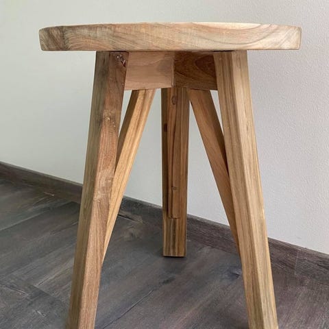 Kauniisti valmistettu nykyaikainen jakkara mustasta teak-puusta. Minimalistinen muotoilu korostaa puun luonnollista kauneutta ja ainutlaatuisia ominaisuuksia – pienet reiät ja luonnolliset jäljet tekevät jokaisesta jakkarasta omanlaisensa.