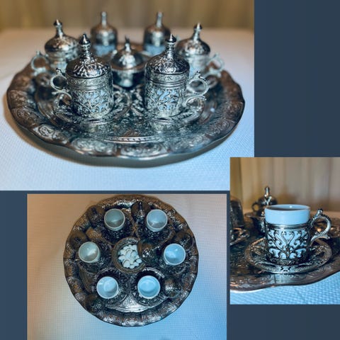 Turkkilainen kahvikuppi ja lautanen, expresso kuppi. Kupin halkaisija 55 mm. Pitää noutaa.
