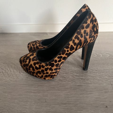 Hyväkuntoiset kengät. Materiaalina mokkamainen tekstiili. Korko n. 10 cm.