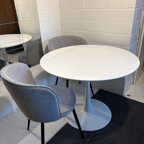 Myydään kuvienmukainen pyöreä ruokapöytä.