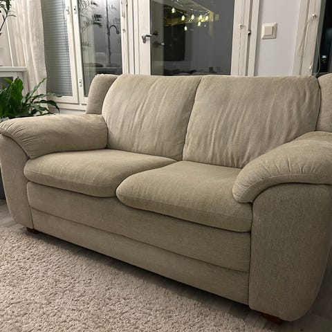 Leveys 163 cm, Syvyys 92 cm, istuinsyvyys 55 cm ja istuinkorkeus 48 cm - rennon pehmeä, hiukan upottava istua.