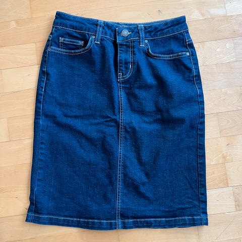 Hyväkuntoinen Noom sininen farkkuhame koko 38. Kokonaispituus 57cm, vyötärö 41cm, lantio 53cm