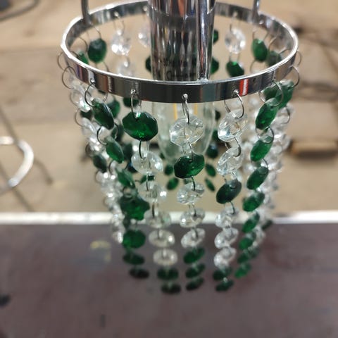 Myydään siisti ja ehjä, pari vuotta käytössä ollut kattovalaisin suoraan käytöstä uuden tieltä. Halkaisija n. 26cm. Timantit muovia.
