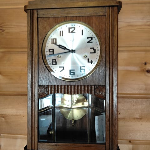 Siisti ja toimiva pöytäkello. Koko 46cm x 9,5 cm x 14 cm.