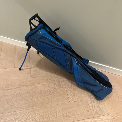 Callaway pikkubägi kunnon kantohihnoilla. Huppu mukana. Käytön jälkiä näkyy mutta yleisilme siisti. Sopii parhaiten max 10 mailalle. Pienet käsin taitettavat jalat.