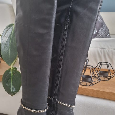 Upeat Ramarim Total Comfort nahkasaapikkaat kumipohjalla. Käyttämättömät. Korko 7cm. Ylöspäin levenevä varsi. Yläreunan ympärys noin 40cm.