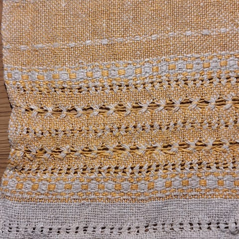 Koko 30 x 174 cm. Pellavan tuntuinen. En ole varma onko aitoa pellavaa. Tuusula,Jokela,Kissakoti mmm