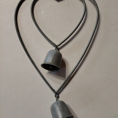 Metallinen, kahdella kellolla oleva koriste on uusi. Pituus n. 33 cm