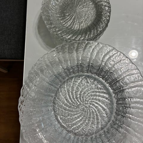 Myynnissä Riihimäen Kastehelmisarjan tarjoilulautasia halkaisijaltaan 248 mm. Lautaset erittäin hyväkuntoisia, uudenveroisia. Lisäksi kirkas ja ruskea, missä reikä keskellä, tarkoitettu kerrosvatiin. Myydään hintaan 20e/kpl, 2 kpl a-hinta 18e. Postitus mahdollista ja kulkeutuu myös lähialueella omien menojen mukaan.