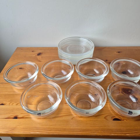 Lautaset erittäin hyväkuntoiset paitsi yksi naarmuuntunut. Halkaisija n 15 cm. Nouto Tikkurilasta.