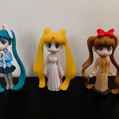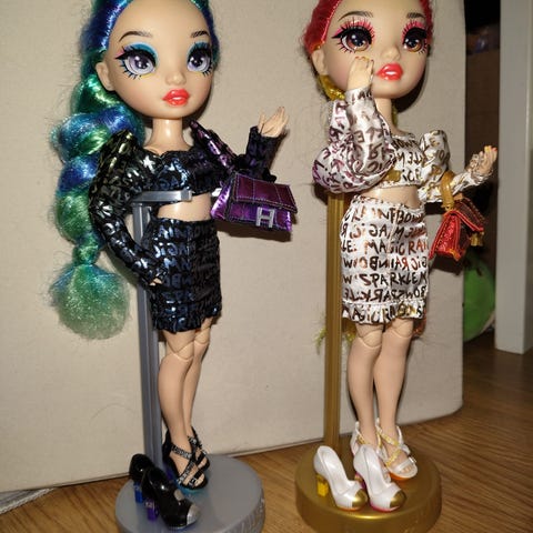 Setti sisältää 2 kpl 14 cm nukkeja jolla on liikuteltavat nivelet, kaksi kampausta, kaksi asua, kahdet kengät ja neljät kasvot.