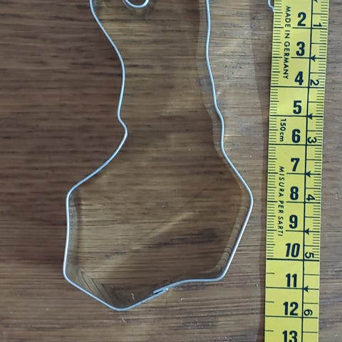 Uusi Martinex iloleipuri lipunmuotoinen piparkakkumuotti. Kahdessa kohtaa jäämiä hintalapusta.