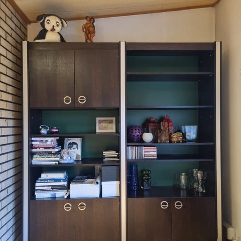 Myydään kuvassa oleva Iskun kirjahylly 70-luvulta. Tummaa puuta (tammiviilu). Siistikuntoinen, ajan tuomalla patinalla. Myynnissä myös toinen saman sarjan pienempi hylly.