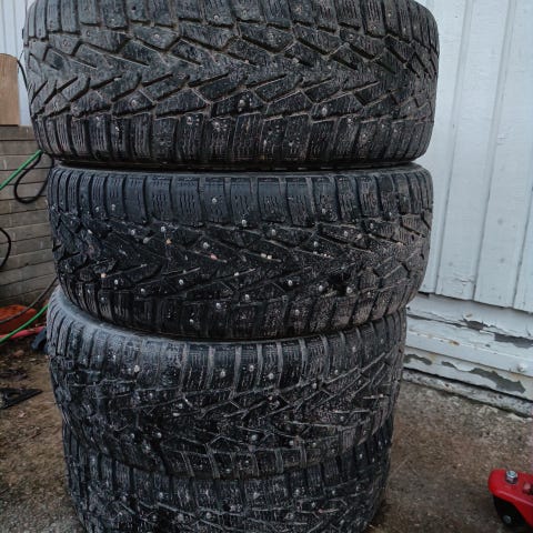 Pintaa n 6-7 mm ja nastat on aikalailla ok vielä. Ikäähän jo on, pikkuajoille ym sopivaan tarkoitukseen menenevät vielä Varastoituna Pyhäsalmi nouto mielellään.