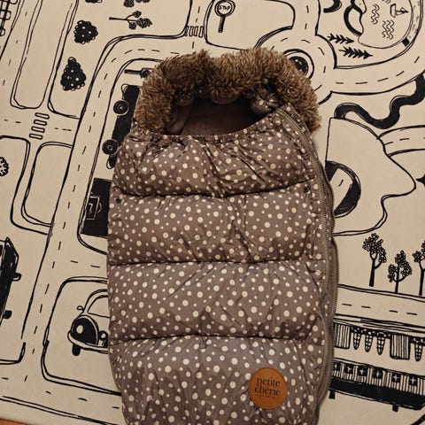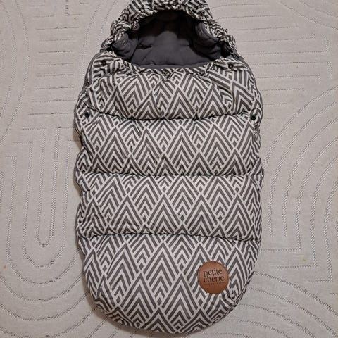 Hyväkuntoinen lämmin untuva toppapussi turvakaukaloon.