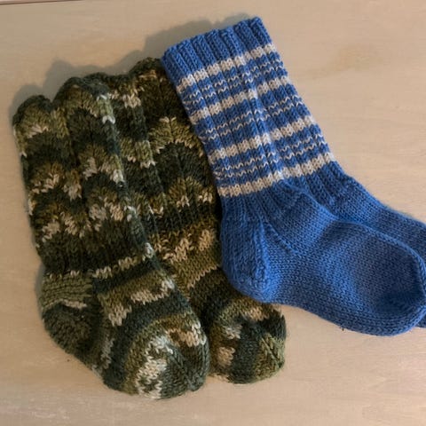 Lasten ihanan oranssi villasetti, villasukat ja tumput, joissa palmikkokuvio. Sukkien pituus noin 15 cm, tumppujen pituus ranteesta kärkeen 14,5 cm. Pestyt.