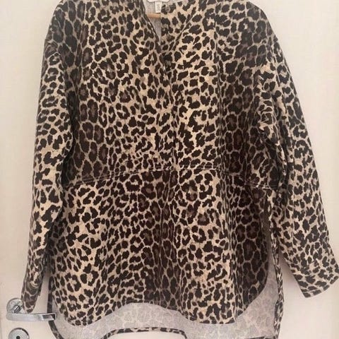 Miellyttävä, viskoositrikoinen leopardikuvioinen paitapusero. (Jäänyt itseltäni käyttämättömäksi.) Reiluhko s-koko merkiltä Esqualo. Tosi laadukkaasti ommeltu. Edessä rinnan kohdalla rypytystä ja puseron malli on hiukan slimmattu. Materiaali on 95%viskoosi, 5%elastaani. (Alkuperäiset laput irrottamattomat ja alkuperäinen hinta 89,95.)