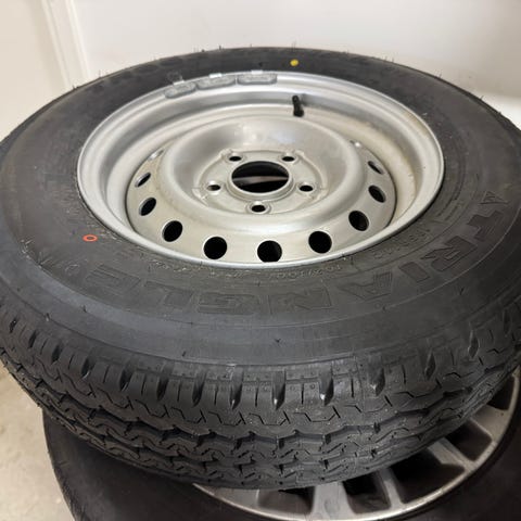 Uudesta kärrystä vaihdettu pois pienempiin niin nämä jäi ylimääräiseksi, Sopii myös asuntovaunuun. C renkaat eli kantavuutta löytyy. 4 x 100 jako niin kuin kärryissä yleensä on. uusimaa tikkurila, kulkeutuu Kuopioon jos tarvetta on