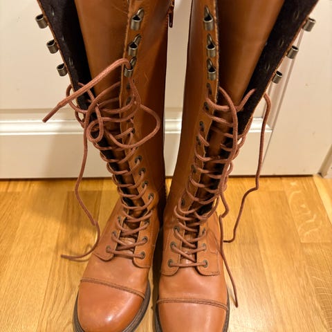 Nahkaiset vähän käytetyt saappaat, hyvässä kunnossa.