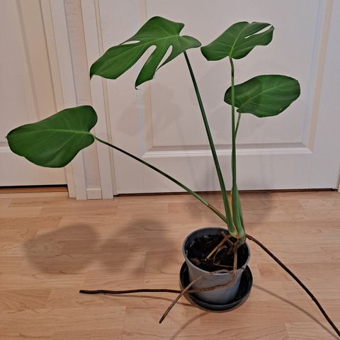Joka suuntaan sojottava, helppohoitoinen ja omaa elämää elävä peikonlehti, paljon tekee uusia pieniä lehtiä säännöllisesti (on alunperin ikeasta). Mukaan tulee altakasteluruukku sekä flamingokori, jossa ruukku on. Tukikepit eivät kuulu kauppaan.