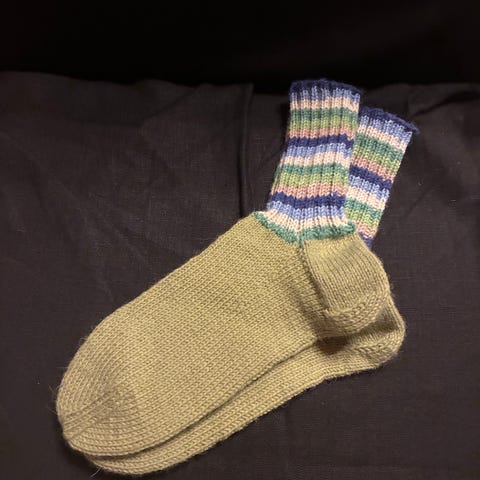 7 veljestä villalangasta itse kudotut koon 46 lämpimät villasukat.