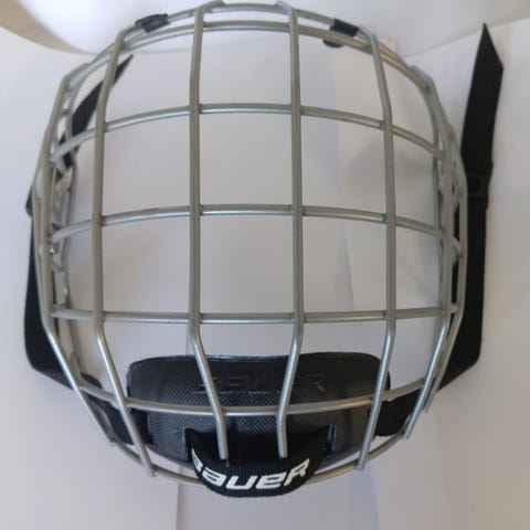 hyväkuntoinen ristikkosuojus, mutta vielä kiinni kypärässä joka on rikki.