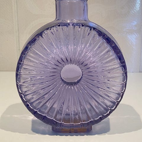 Myydään hyvä kuntoinen Riihimäen Lasin valmistama ja Helena Tynellin suunnittelema pienin (1/4) Aurinkopullo, sininen.