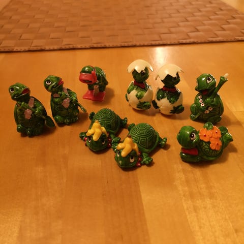 Kindereistä tulleita kilpikonnia, pohjassa Ferrero 1991