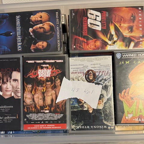 Myydään VHS-elokuvia 45 kappaletta. Suomalaisia ja ulkomaisia. Vain nouto. Lisää tietoa numerosta 0400-407336.