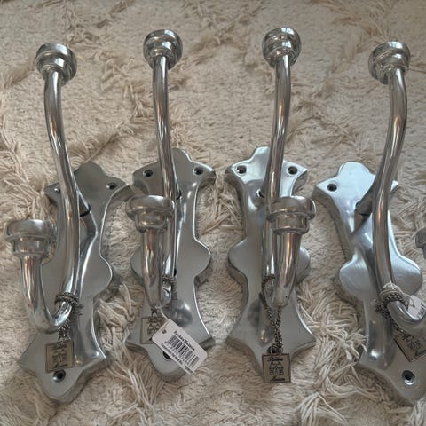 Neljä alumiinista RM "Glossy Loop hook" -koukkua vaatteille, laukuille jne.
