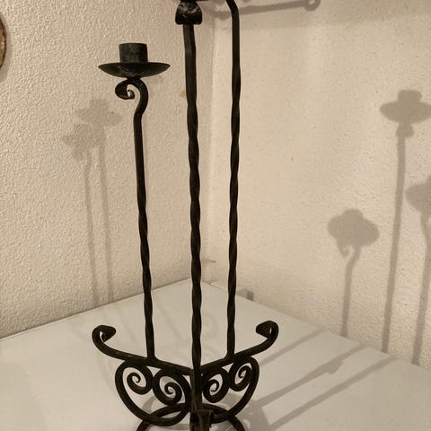 Valmistettu aidoista, kerätyistä simpukankuorista. Pohjana toimii kaunis, uurteinen kampasimpukan kuori, ja kynttilän paikkana on suurempi, kierteinen kotilonkuori.
