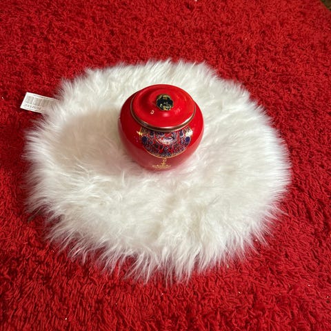 Disneyn posliinia oleva joulukoriste alkuperäisessä pakkauksessa. Pakkaus jonkin verran aikaa elänyt, mutta koriste on kuin uusi.