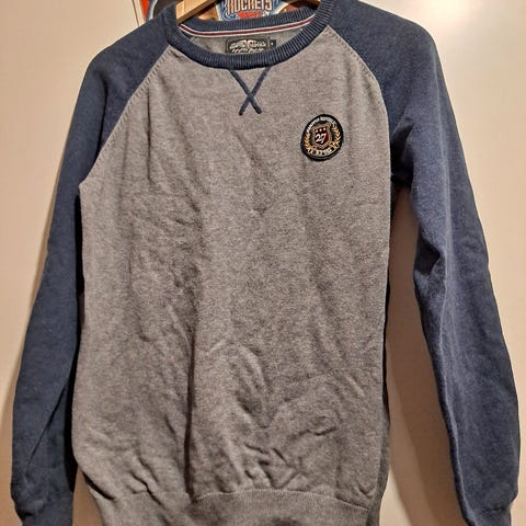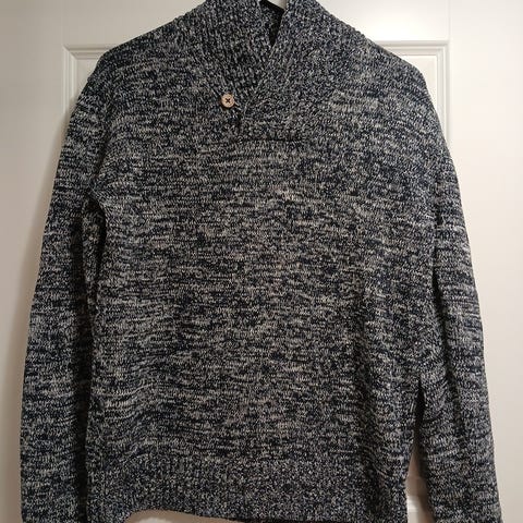 Miesten rento mutta siisti neulepaita. Valko-harmaaraitainen punaisilla yksityiskohdilla. Korkea vetoketjullinen kaulus. Huom. Kauluksessa on tahroja, jotka eivät lähteneet peruspesussa. Tahranpoistajaa en ole yrittänyt käyttää. Muuten paita on erinomaisessa kunnossa.