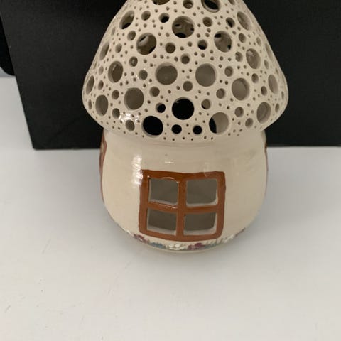 Myydään keraaminen kaksiosainen tuikkulyhty. Päälle laitettavassa astiassa voi käyttää tuoksuöljyä. Tuoksuöljy ja tuikku tulee mukana. Nouto tai postitus.