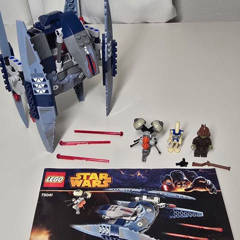 Mukaan tulee kaikki mitä kuvissa näkyy. Rakennelma ja ohjeet ovat hyväkuntoisia. Minifiguureista puuttuu Grievous itse, loput kaksi figuuria ovat hyväkuntoisia. Kaikkien osien pitäisi olla tallella, mutta mukaan ei tule extraosia. Lisäkuvia ja tarkennuksia saa tarvittaessa.
