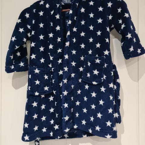 Hyväkuntoinen lasten kylpytakki, ollut meillä käytössä 2-4 vuotiaana. Niskasta helmaan 80cm pitkä. Menee noin 98-110 kokoiselle.