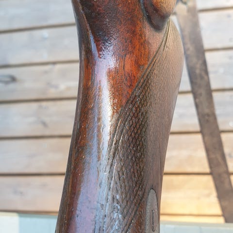 Haulikko hyvässäkunnossa, pinoiskivääri vasenkätinen pistoolimallinenperä, panoksia