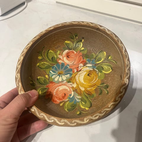 Puinen kulho esim. hedelmille. Halkaisija leveimmästä kohdasta 30cm