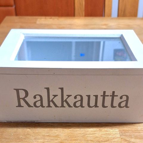Kauniisti vanhentunut laukku koristekäyttöön. Mitat noin 60cmx38 cm. Lukkoihin ei kannata luottaa ja reikiä ja koloja löytyy, mutta ei haise. Toimitti hienosti korttilaatikon virkaa häissä eikä nyt enää mahdu nurkkiin pyörimään.