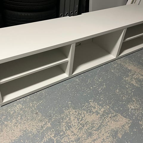 Hyväkuntoinen tv-taso. Kuvassa ainut pieni jälki mikä löytyy, mutta jää telkkarin alle jos tv on tason päällä. Vetolaatikot toimii myös hyvin. Leveys 120 syvyys 45 ja korkeus 38