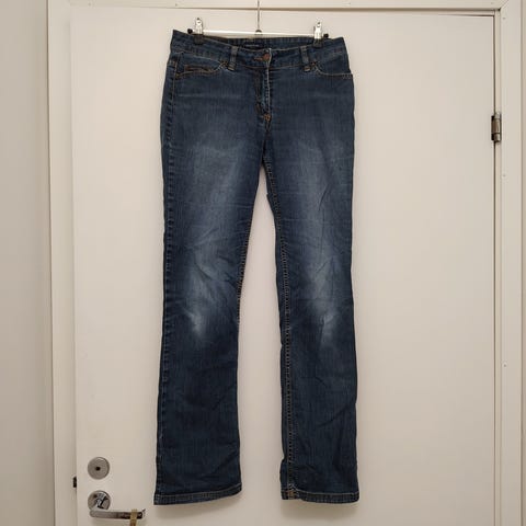 Vyötärö ihan ylhäältä n. 38cm. Vyötärö-haara n. 31cm. Haara-lahje n. 69cm.