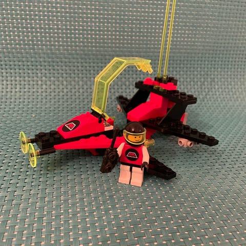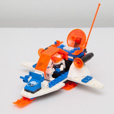 Aito Lego M:Tron sarjan setti -90 luvun alkupuolelta. Lapsena leikitty eli käytön jälkeä on, mutta osien kunto hyvä. Tässä erikoisuutena aluksen perässä magneettikiinnitteinen tavarankuljetussäiliö. Tähän ei ole ohjekirjaa tallessa mutta voin tarvittaessa linkata osoitteeseen josta löytyy kuvamuodossa oleva ohje.