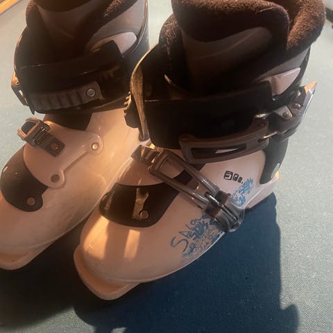 Head Edge RS junior laskettelumonot, värit valkoinen, musta ja punainen. Monot on varustettu kolmella soljella ja säädettävällä varren kiristyksellä, jotka tarjoavat hyvän tuen ja istuvuuden. Monot on käytetyt ja hyvin pidetyt. Koko 230/235