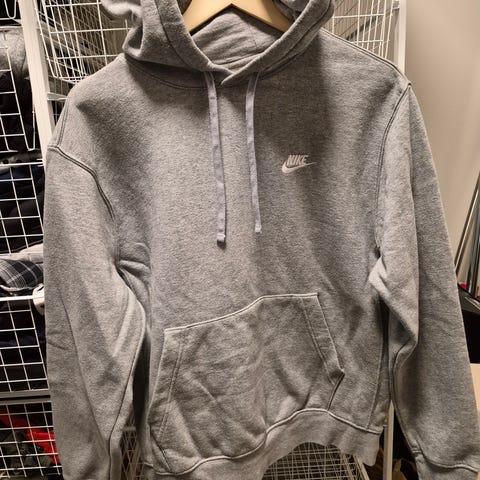 Nike Harmaa miesten huppari, koko M. Sopii arkikäyttöön ja urheiluun. Pieni maalitahra toisessa hihassa (näkyy kuvassa).